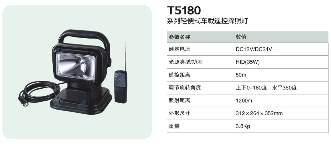 T5180系列轻便式车载遥控探照灯