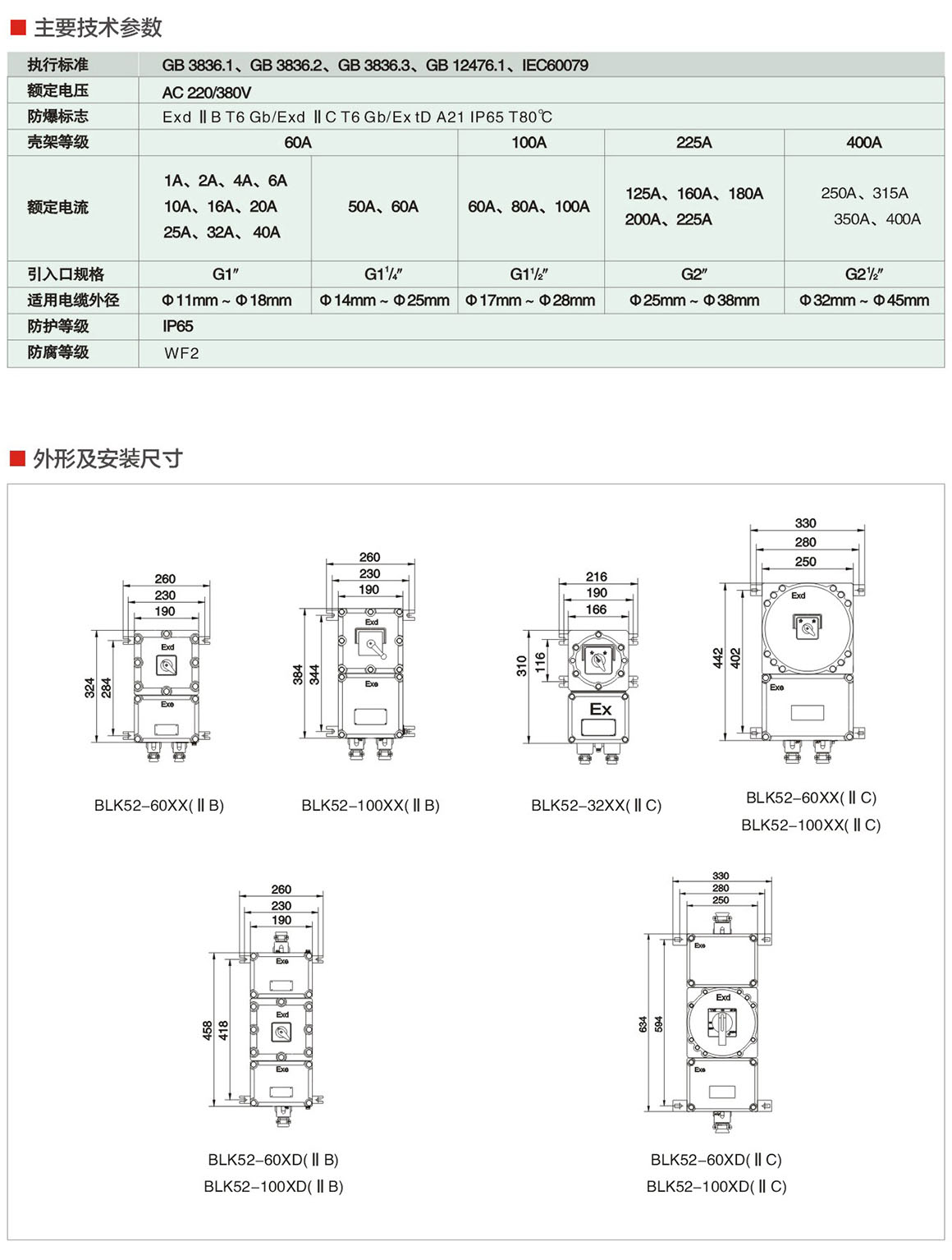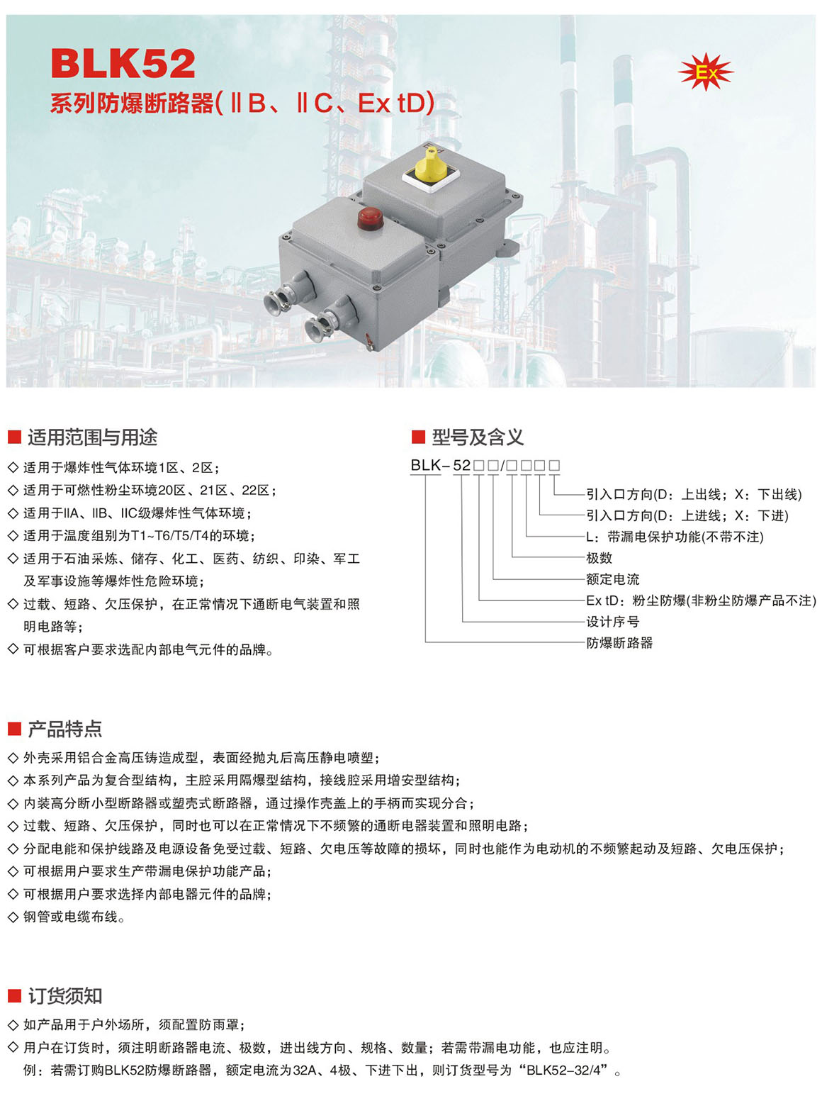 BLK52系列防爆断路器(ⅡB、ⅡC、Ex tD)