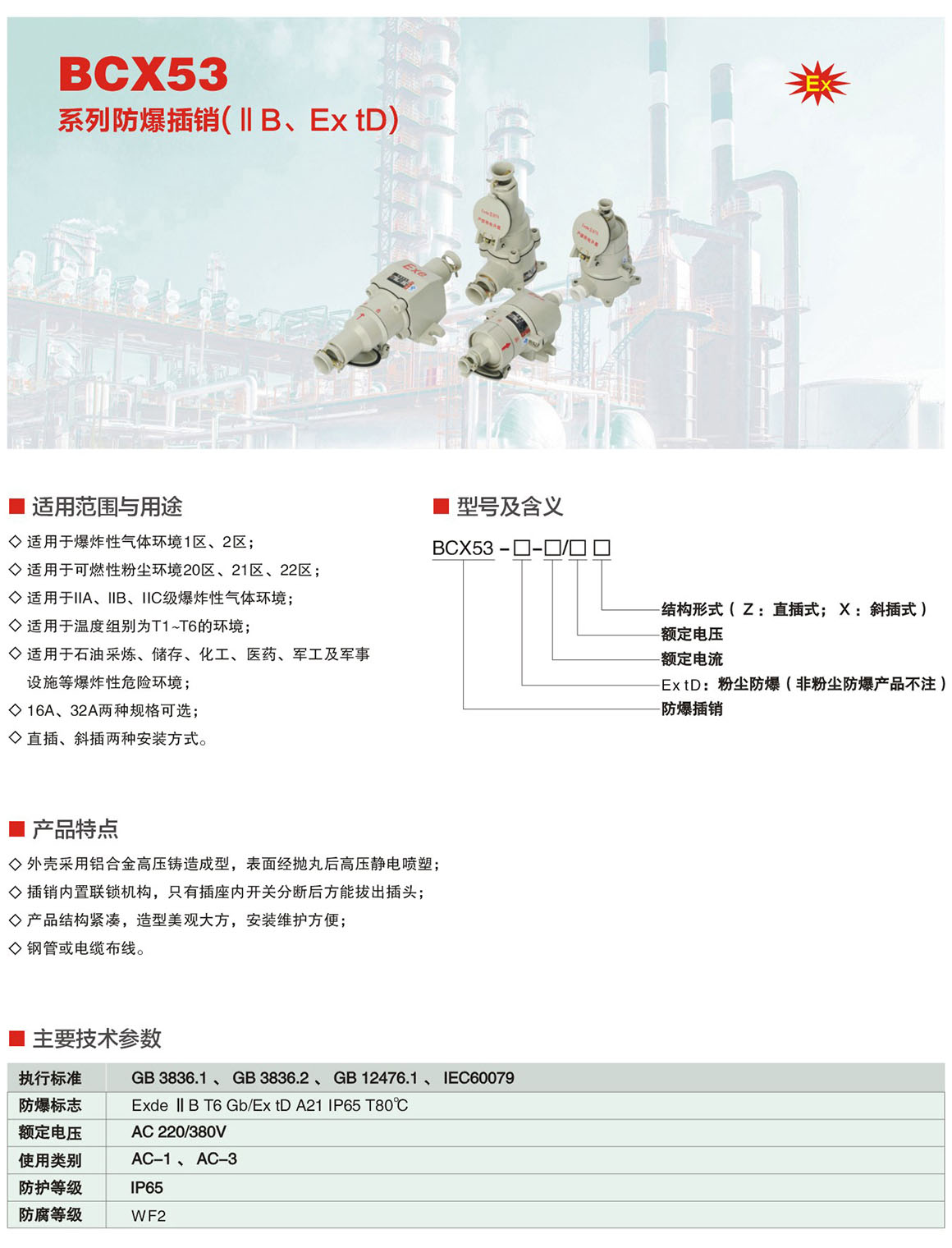 BCX53系列防爆插销(ⅡB、Ex tD)