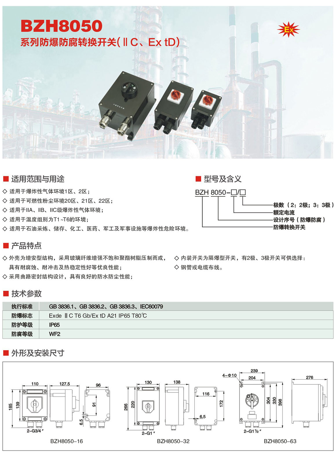 BZH8050系列防爆防腐转换开关(ⅡC、Ex tD)