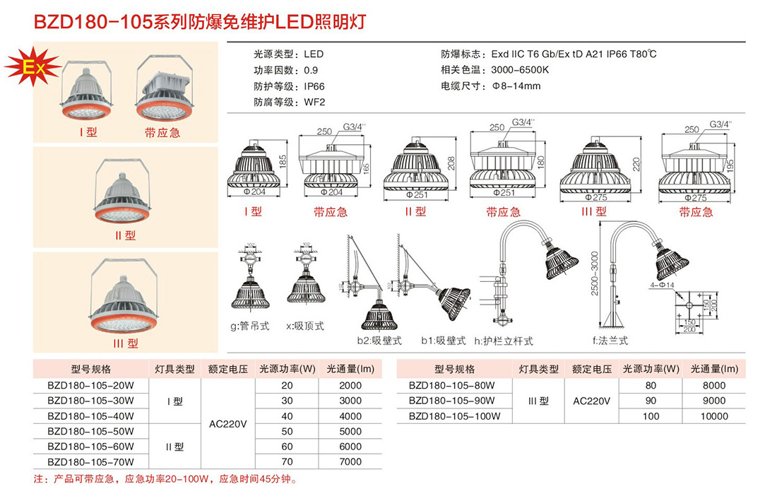 当前位置: 首页 > 产品中心 > 防爆免维护LED灯具系列 > 免维护LED防爆照明灯BZD180-105 Ⅱ型
