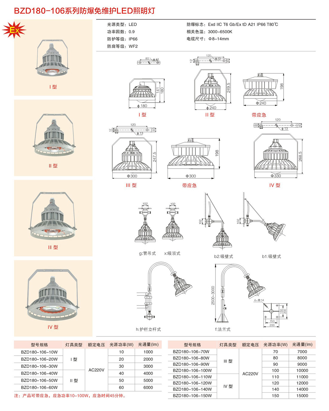 当前位置: 首页 > 产品中心 > 防爆免维护LED灯具系列 > 免维护LED防爆照明灯BZD180-106 Ⅱ型