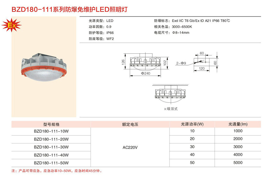 当前位置: 首页 > 产品中心 > 防爆免维护LED灯具系列 > 免维护LED防爆照明灯BZD180-111