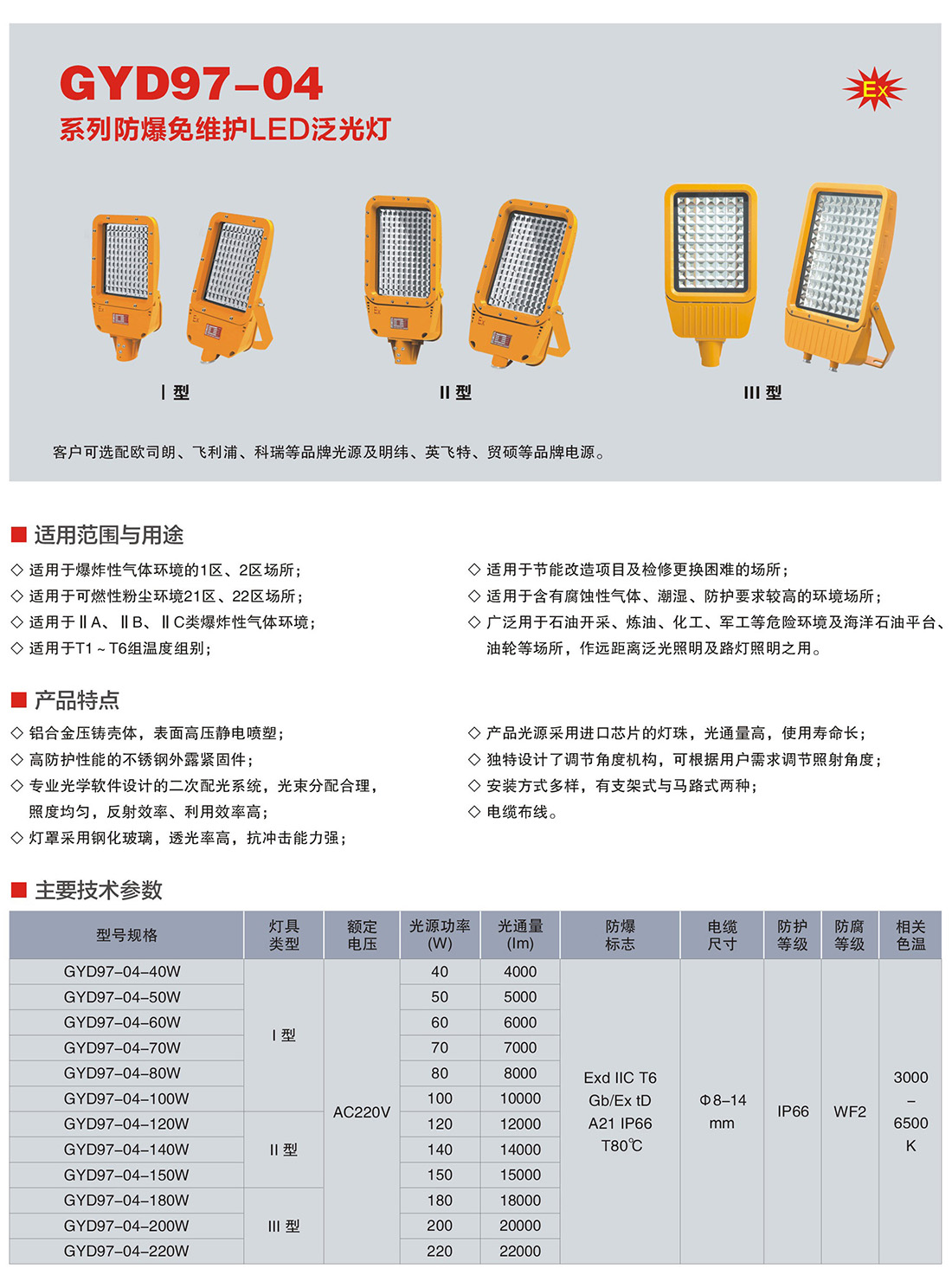 当前位置: 首页 > 产品中心 > 防爆免维护LED灯具系列 > GYD97-04 系列防爆免维护LED泛光灯
