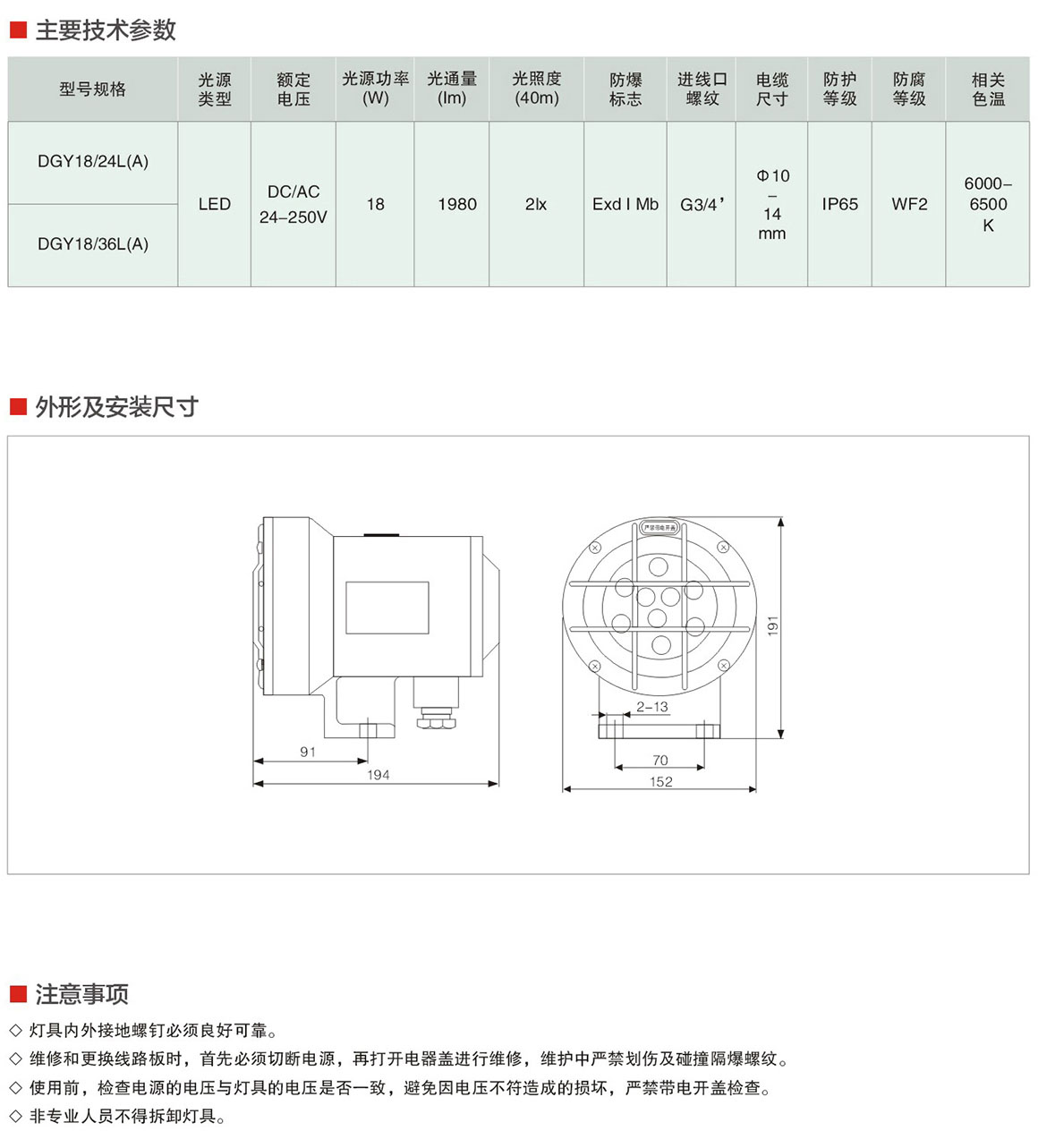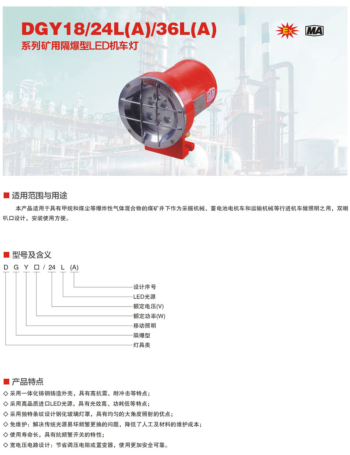 DGY18/24L(A)/36L(A)系列矿用隔爆型LED机车灯
