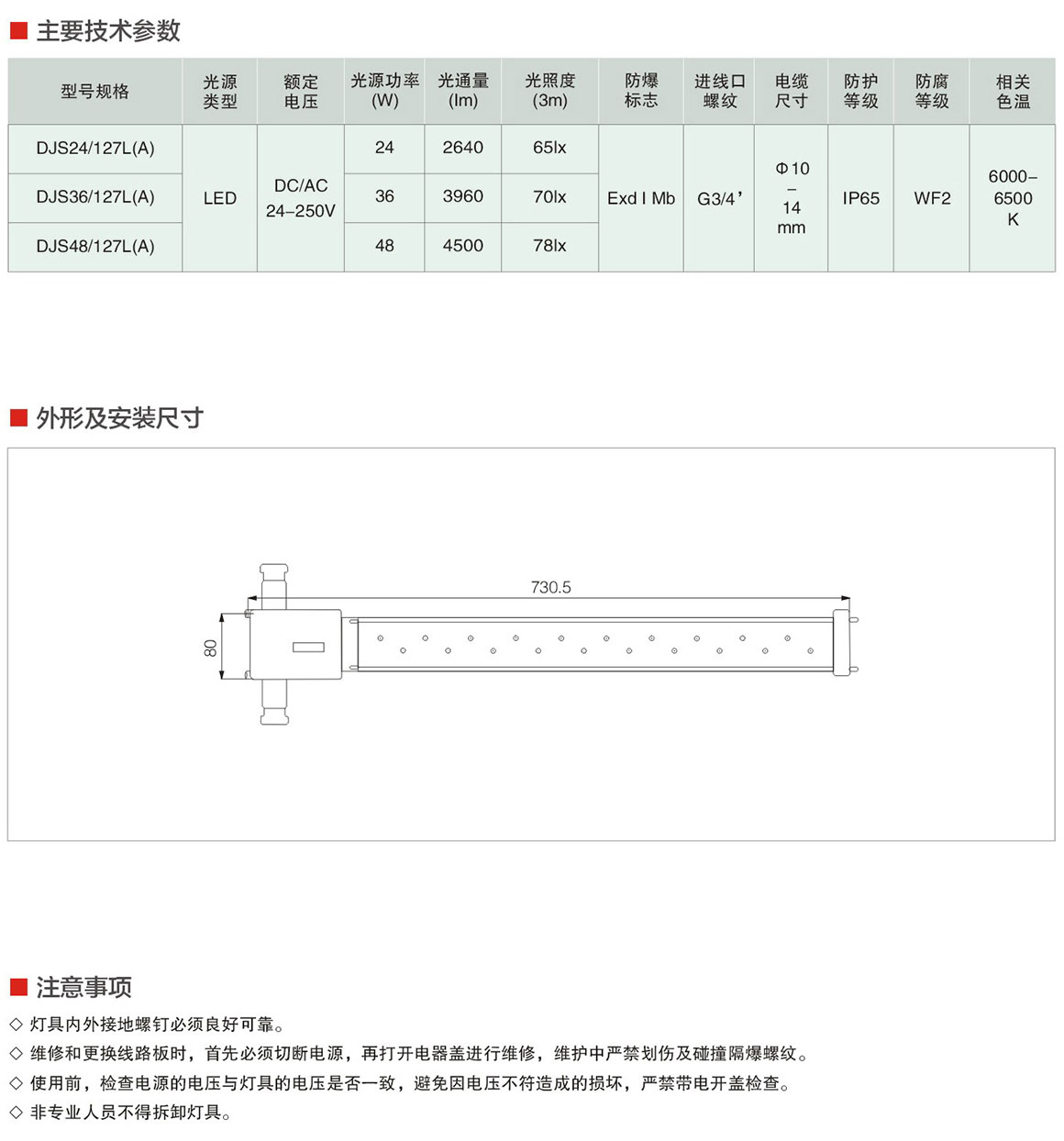 DJS24/36/48/127L(A)系列矿用隔爆兼本质安全型LED巷道灯