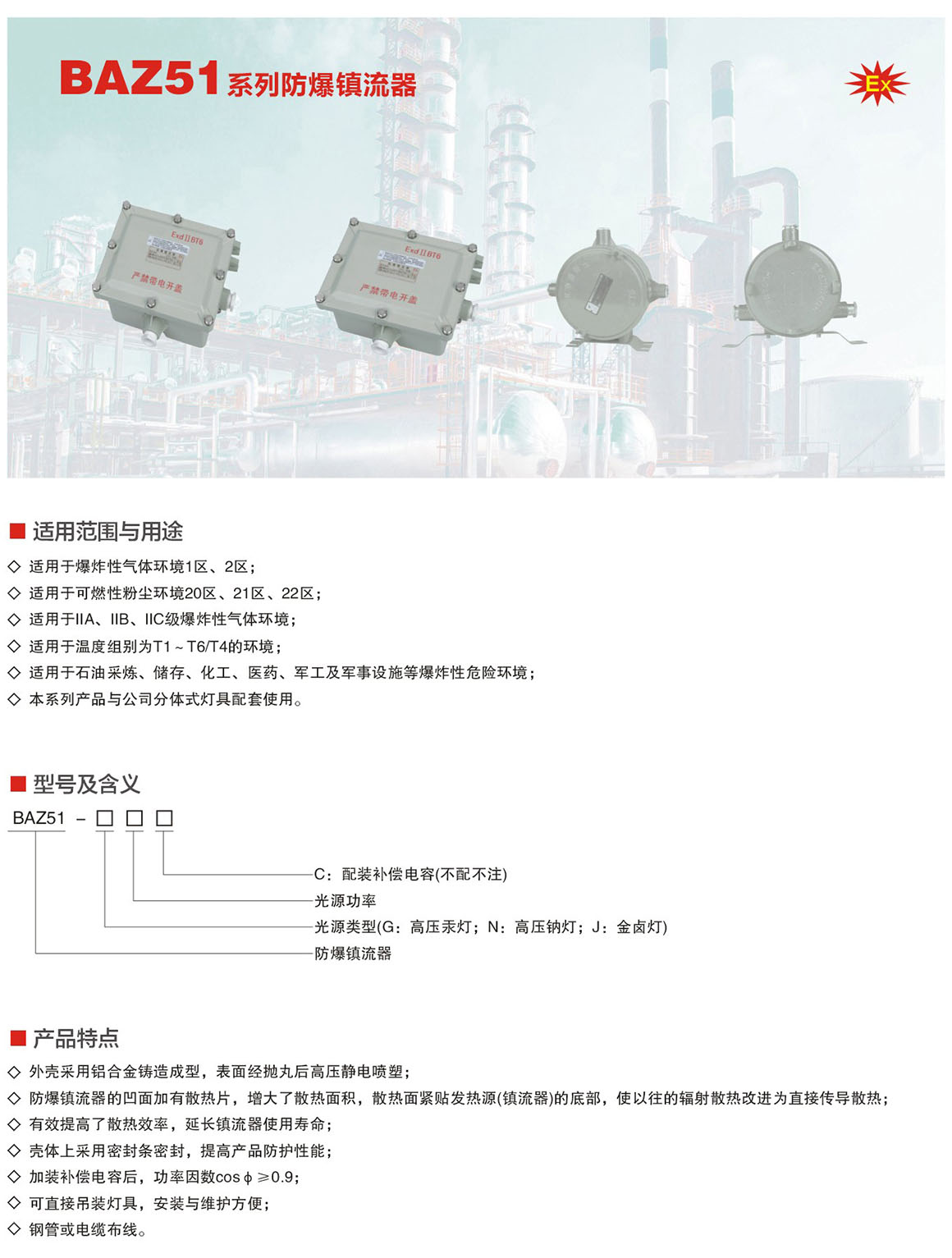 当前位置: 首页 > 产品中心 > 厂用防爆灯具系列 > BAZ51系列防爆镇流器(ⅡC)