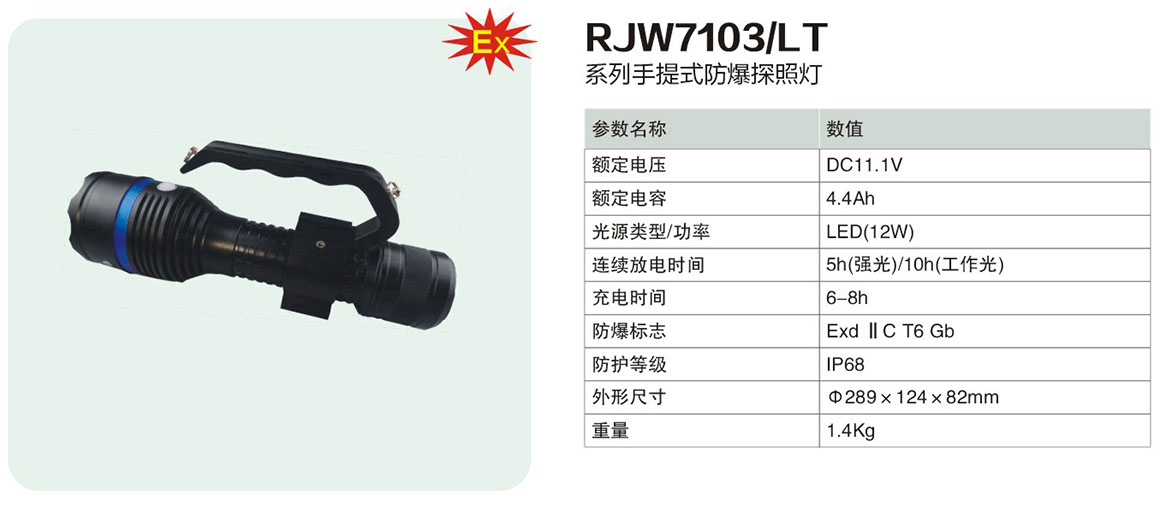 RJW7103/LT系列手提式防爆探照灯(ⅡC)