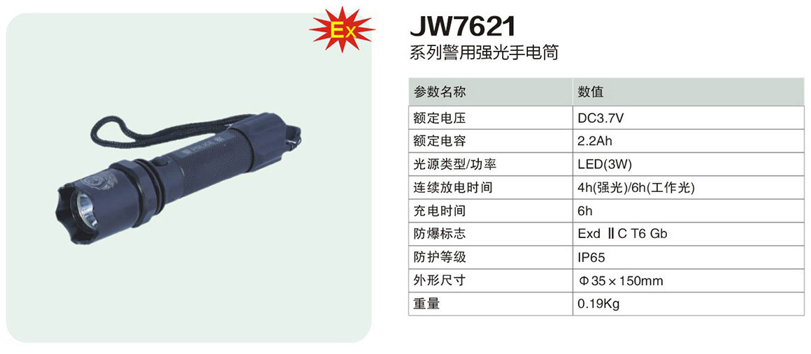 当前位置: 首页 > 产品中心 > 移动防爆照明系列 > JW7621系列警用强光手电筒(ⅡC)
