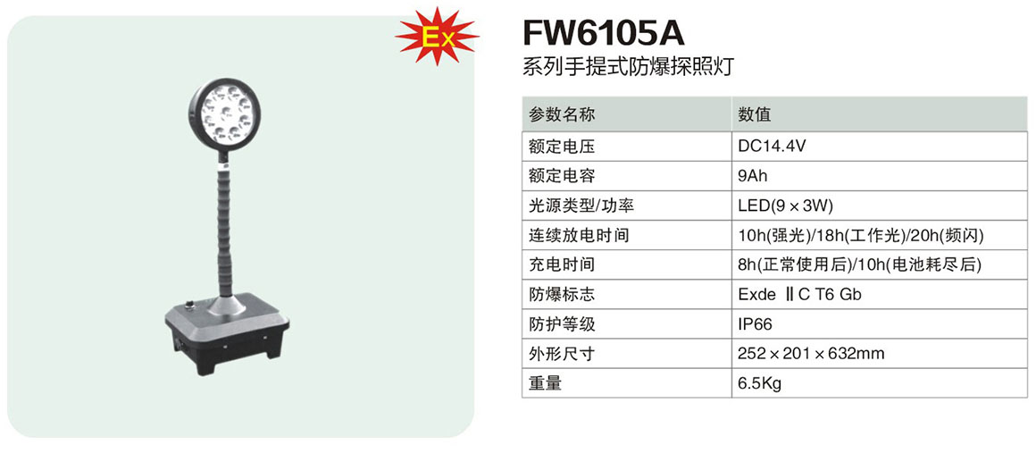 FW6105A系列手提式防爆探照灯(ⅡC)