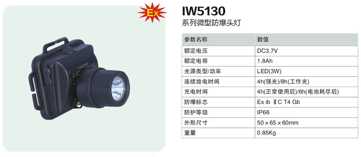 IW5130系列微型防爆头灯(ⅡC)