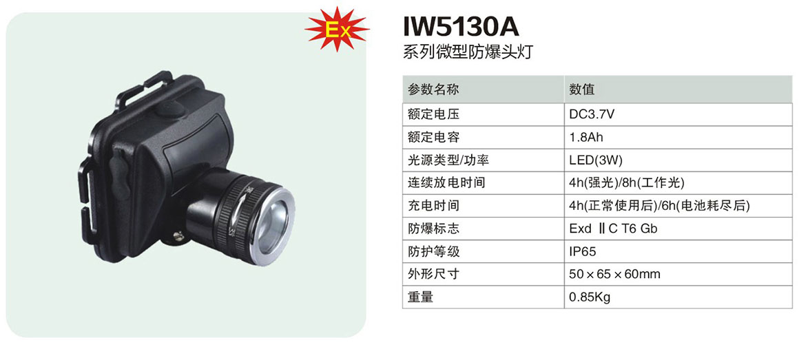 IW5130A系列微型防爆头灯(ⅡC)